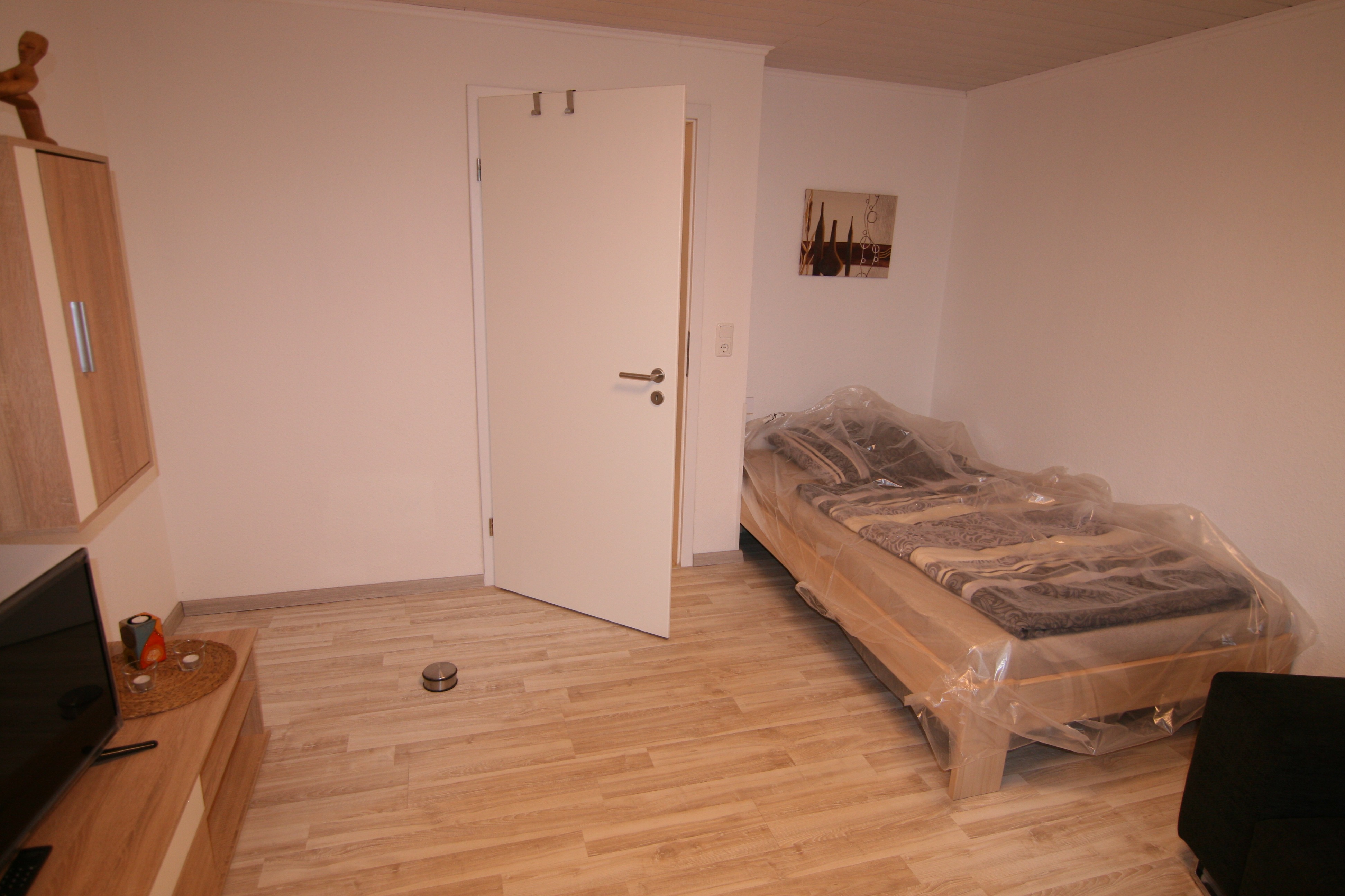je Zimmer mit Bett, Schrank, Fernseher etc.