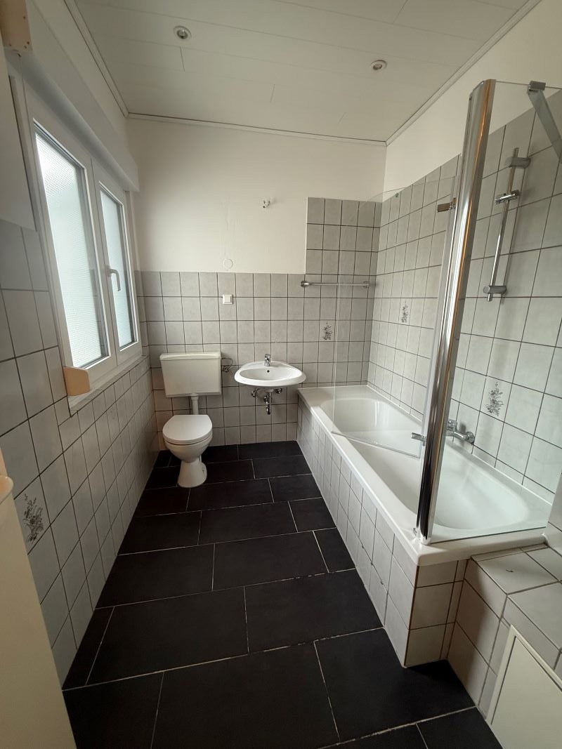 – Tageslichtbad mit Wanne, hell gefliest