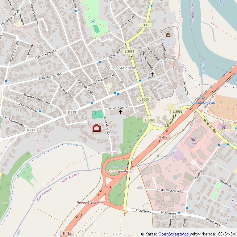 Hanau hat ca. 88000 Einwohner. Bahnhöfe: Hanau Hauptbahnhof, verknüpft die sechs vorgenannten Strecken Hanau West, an der Frankfurt-Hanauer Eisenbahn (Haltepunkt) Hanau-Wilhelmsbad, an der Frankfurt-Hanauer Eisenbahn (Haltepunkt) Hanau-Großauheim, an der Main-Spessart-Bahn (Haltepunkt) Wolfgang an der Frankfurt-Bebraer Eisenbahn, östliche Richtung Steinheim an der Frankfurt-Bebraer Eisenbahn, westliche Richtung (Haltepunkt der S-Bahn) Hanau Nord an der Hanau-Friedberger Bahn, ehemals auch Hanauer Kleinbahn Klein Auheim an der Odenwaldbahn (Haltepunkt) Straße.