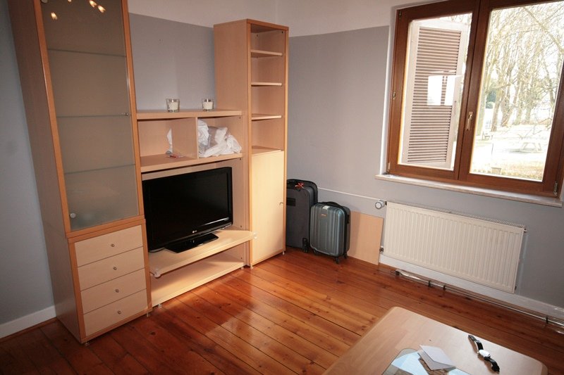 – Wohnzimmer, große Couch, Sideboard, Fernseher etc.