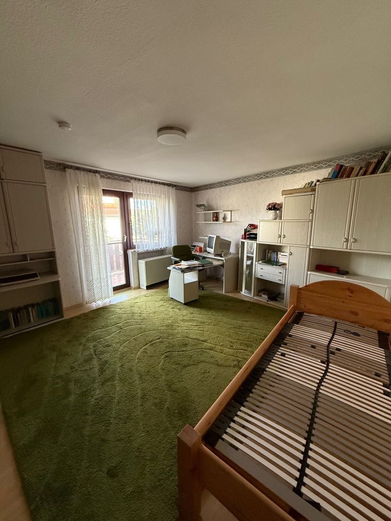 Über eine Treppe erreicht man das Obergeschoss. Dort stehen drei weitere Zimmer zur Verfügung, von denen zwei Zugang zum Balkon bieten- ideal als Schlafzimmer, Kinderzimmer oder Homeoffice. Das Badezimmer auf dieser Etage ist sowohl mit Wanne, ala auch Dusche ausgestattet.