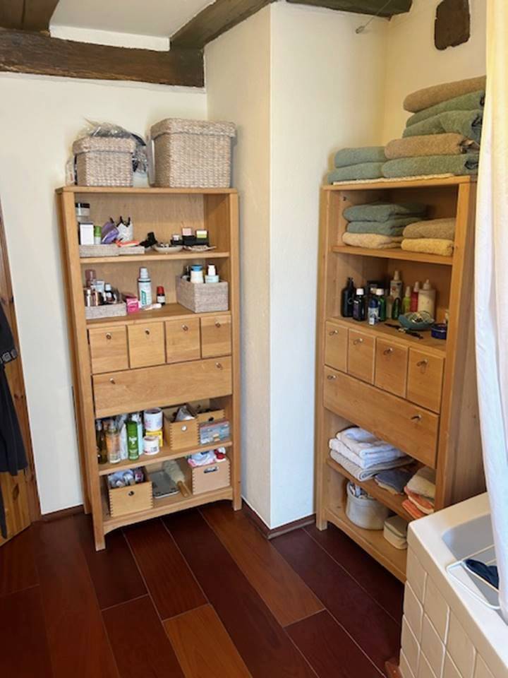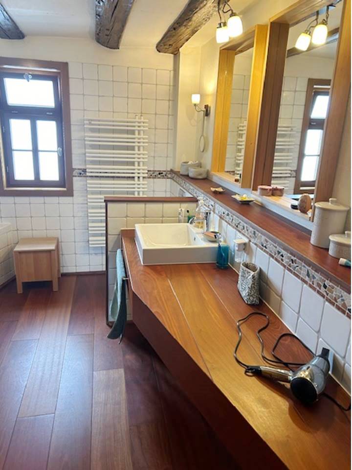 Im Inneren des Bauernhauses erwarten Sie insgesamt vier Zimmer, darunter drei Schlafzimmer und zwei Badezimmer. Die großzügige Raumaufteilung und die hohen Decken verleihen den Räumlichkeiten eine gemütliche Atmosphäre. Die liebevoll restaurierten Holzbalken und die historischen Details verleihen dem Haus einen besonderen Charme. Die Wohnküche lädt zum gemeinsamen Kochen und Essen ein, während das geräumige Wohnzimmer viel Platz für entspannte Abende bietet.