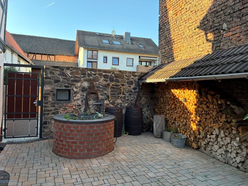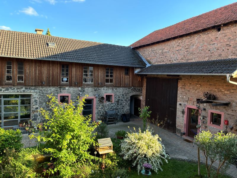 Das Anwesen befindet sich im Stadtteil Hanau-Mittelbuchen. Hanau-Mittelbuchen ist ein ruhiges, ländliches Viertel am Stadtrand von Hanau, umgeben von grünen Wiesen und Wäldern. Die Nachbarschaft zeichnet sich durch ihre idyllische Atmosphäre und die Nähe zur Natur aus. Kleine Bauernhöfe und gemütliche Wohnhäuser prägen das Bild des Stadtteils, während gleichzeitig alle Annehmlichkeiten des städtischen Lebens in der Nähe sind.