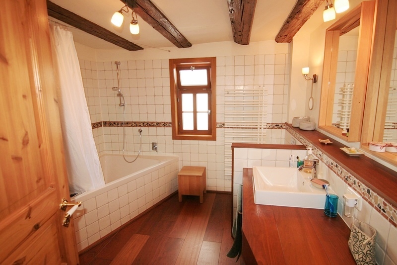 Im Inneren des Bauernhauses erwarten Sie insgesamt vier Zimmer, darunter drei Schlafzimmer und zwei Badezimmer. Die großzügige Raumaufteilung und die hohen Decken verleihen den Räumlichkeiten eine gemütliche Atmosphäre. Die liebevoll restaurierten Holzbalken und die historischen Details verleihen dem Haus einen besonderen Charme. Die Wohnküche lädt zum gemeinsamen Kochen und Essen ein, während das geräumige Wohnzimmer viel Platz für entspannte Abende bietet.