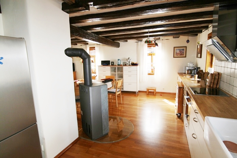 – Wohnküche mit hochwertiger Einbauküche sowie Holzofen