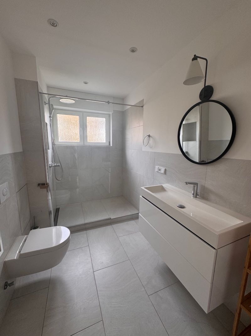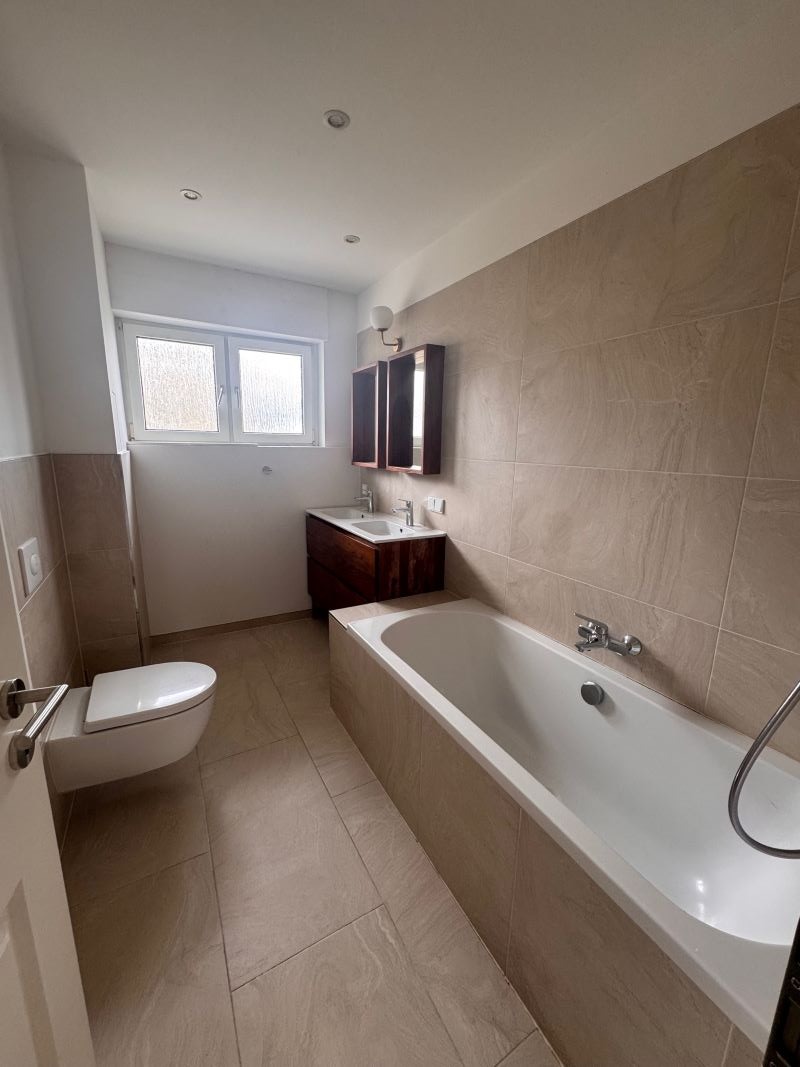 - Ausstattung des Bades Dusche, Fenster, Badewanne