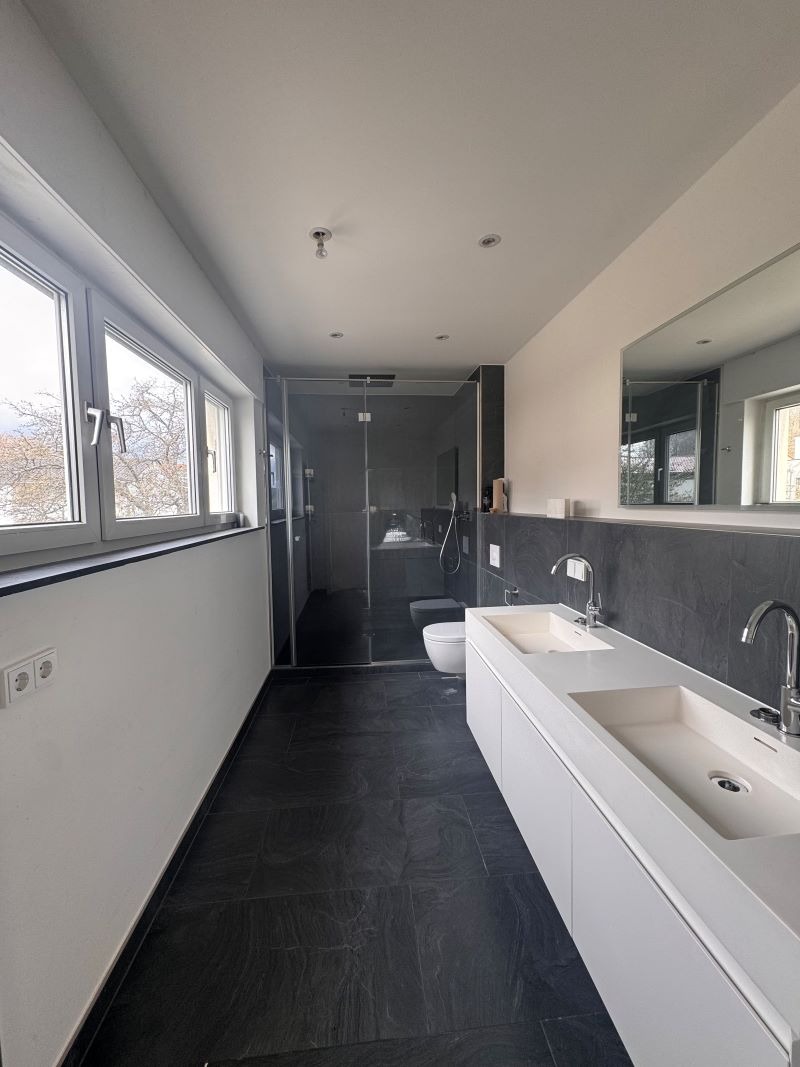 - Ausstattung des Bades Dusche, Fenster, Badewanne
