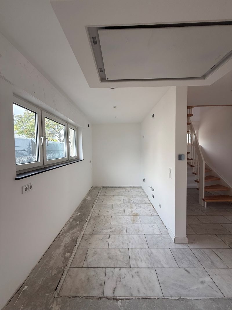 Beim Betreten des Hauses gelangen Sie zunächst in das Treppenhaus, das Sie in den großzügigen Wohnbereich des Erdgeschosses führt. Hier erwartet Sie ein heller Wohn- und Essbereich mit direktem Zugang zur Terrasse und in den Garten. An das Wohnzimmer schließt sich ein separater Essbereich an, der vielfältige Nutzungsmöglichkeiten bietet.