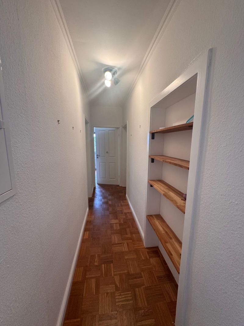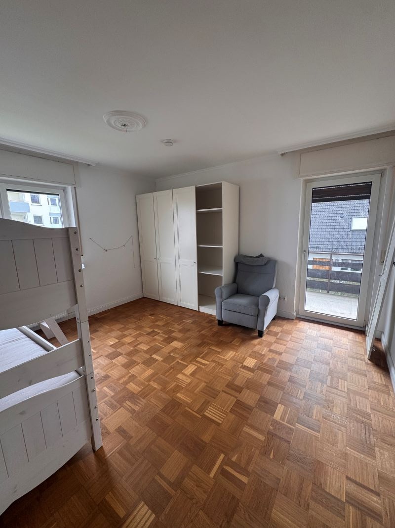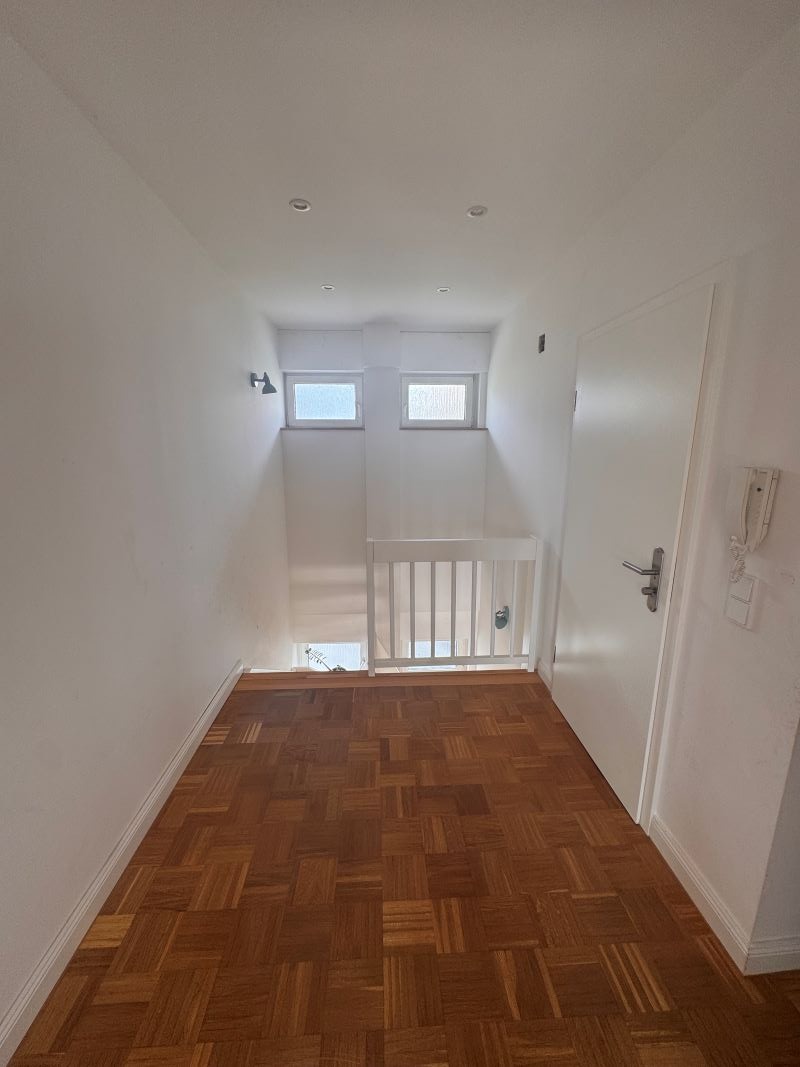 Über eine Holztreppe im Eingangsbereich erreichen Sie den oberen Wohn- und Schlafbereich. Hier finden Sie das Elternschlafzimmer mit angrenzendem Ankleidezimmer, sowie direktem Zugang zu einem Badezimmer. Ergänzt wird das Raumangebot durch zwei weitere helle Kinderzimmer und ein weiteres Badezimmer mit Badewanne.