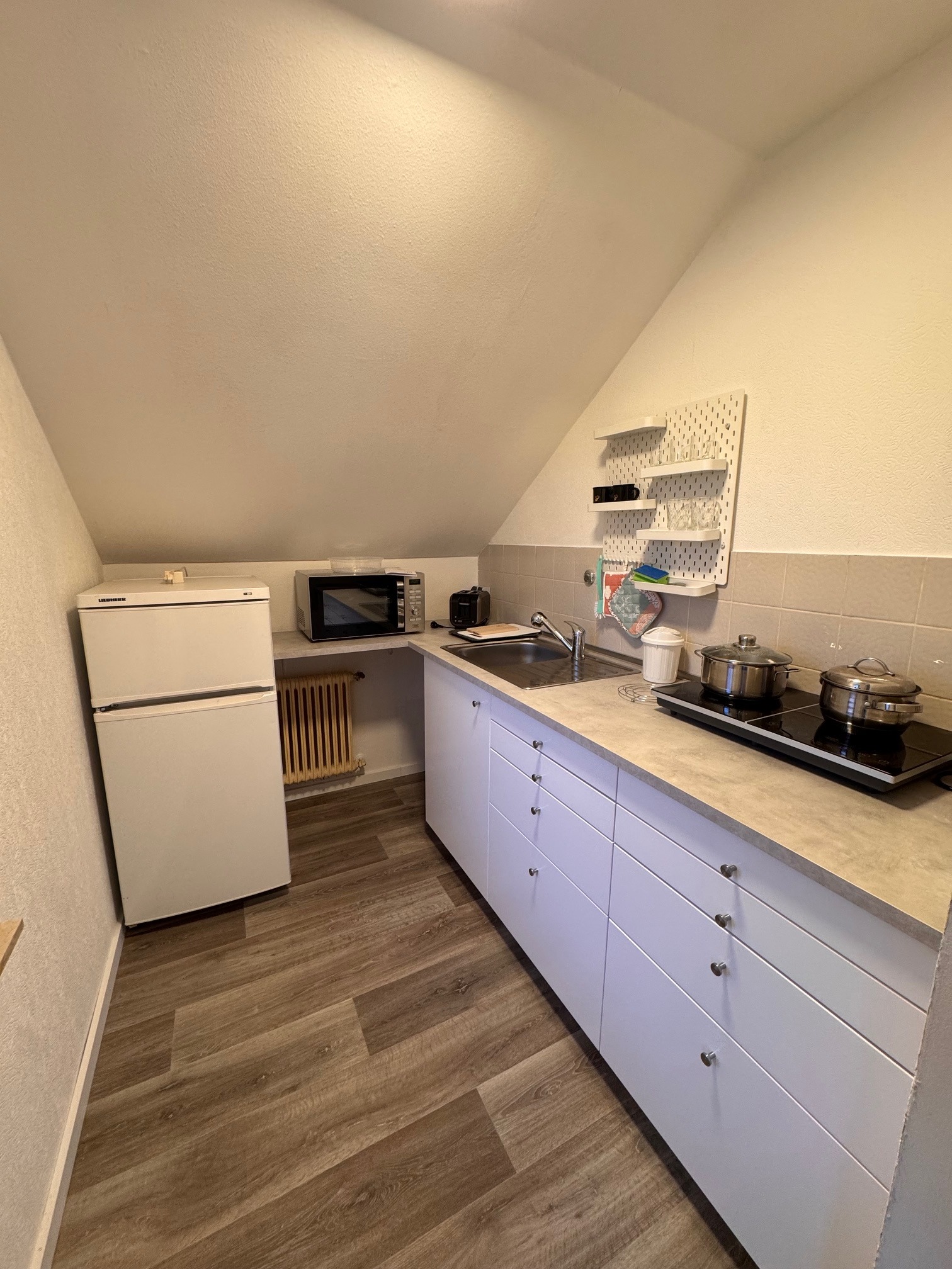 Dieses voll möblierte Apartment verfügt in seinem Wohn- und Schlafbereich über eine gemütliche Einrichtung. Das Apartment ist mit einer Single-Küche mit Frühstückstisch ausreichend ausgestattet. Das Tageslichtbad ist mit einer Dusche versehen.